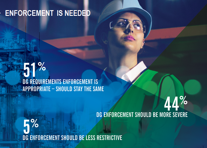 - 95% believe DG enforcement is appropriate, or should be more severe.