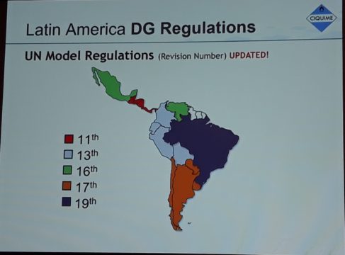 To highlight the patchwork of regulatory protocols that govern hazmat transport in Mexico, Central and South America, Gotelli described a true Phosphorus Oxychloride delivery from San Antonio to Buenos Aires that required four placard changes and five different formats of “emergency cards”—and still incurred $30,000 in fines.