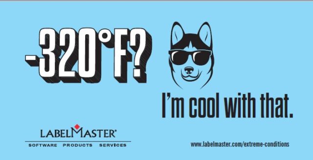 But this cold-resistant material isn’t just for Dangerous Goods applications. According to Labelmaster product manager Jill Resendiz, it can be used for “anything that goes in and out of freezers. It can wrap around test tubes—or any object with a small radius—and will adhere all the way down to cryogenic levels.”
