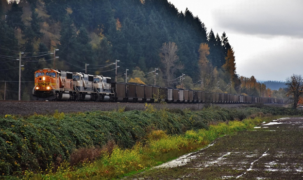 The EPA published a public hearing schedule for feedback on its announced intention to scrap the Obama era “Clean Power Plan” severely limiting carbon emissions from energy generating plants, particularly those fired by coal. A coal train led by three BNSF SD70MAC’s rolls through stormy weather in Sumner, Washington on Sunday, November 12th, 2017. Image © 11/2017 by Nikki Burgess; all rights reserved.
