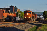 The EPA published a public hearing schedule for feedback on its announced intention to scrap the Obama era “Clean Power Plan” severely limiting carbon emissions from energy generating plants, particularly those fired by coal. A coal train led by three BNSF SD70MAC’s rolls through stormy weather in Sumner, Washington on Sunday, November 12th, 2017. Image © 11/2017 by Nikki Burgess; all rights reserved.