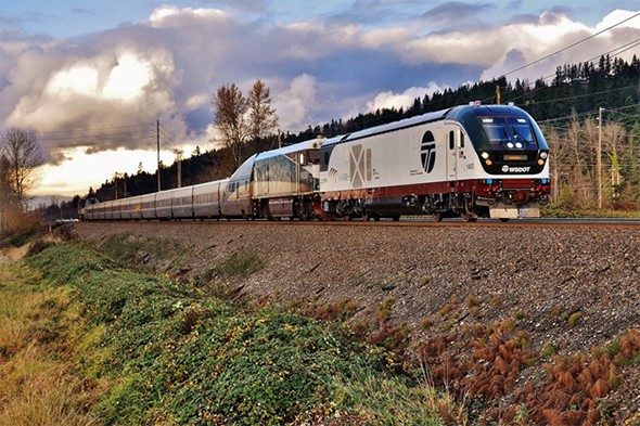 The FRA issued another extension of the Safety Plan requirement deadline date for certain passenger carrying railroads, allowing them more time to coordinate operations with the freight carriers whose tracks they largely operate over. The new extension runs until December 4th, 2018. A brand new Siemens SC-44 Charger passenger locomotive leads Amtrak train #507 south through Sumner, Washington during the unit’s first weekend of revenue service on Sunday, December 3rd, 2017. Photo by Nikki Burgess © 12/2017; all rights reserved.