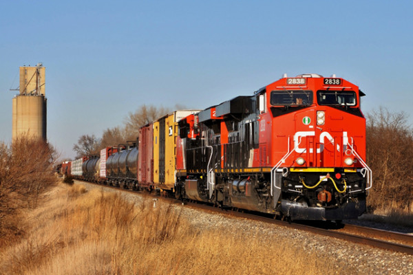 Photo credit: This week finds proposed rules regarding revised tank car standards and crew fatigue issues under consideration in both Canada and the United States; here a Canadian National Railways train is southbound with tank cars as part of its lading in December of 2013. © 12/2013 by Nikki Burgess; all rights reserved.