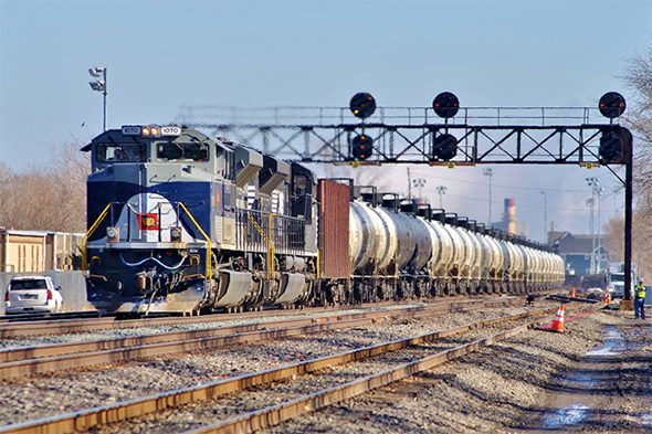 PHMSA and the FRA announced a revised Regulatory Impact Analysis (RIA) available for comment on the 2015 final rule regarding electronically controlled brakes (ECP’s) for high hazard flammable trains. A bulk oil movement on the Norfolk Southern Railroad passes through Hammond, Indiana on a crisp winter day in 2015. Image © 2/2015 by Nikki Burgess; all rights reserved.