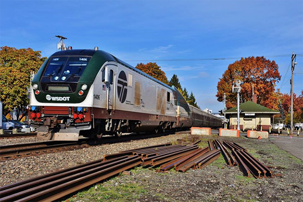 The FRA published an ICR intended to help determine the impact of pre-duty commute times on locomotive engineer performance. An Amtrak Cascades Service train speeds through the fall colors and past the depot in Kent, Washington on October 27th, 2018. Image © 10/2018 by Nikki Burgess; all rights reserved.