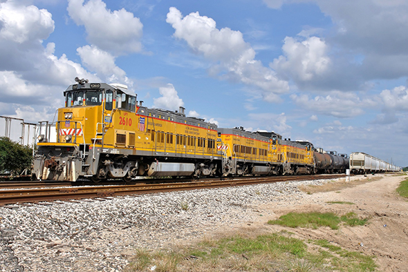 The nation’s leading rail carriers will spend a combined $2 billion+ USD on safety and operating infrastructure in 2017, the American Association of Railroads announced. A Union Pacific Railroad industry switcher works in Laporte, Texas along the “Chemical Coast” east of Houston. Image © 9/2014 by Nikki Burgess; all rights reserved.