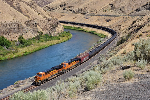 PHMSA will decide a regulatory dispute between the states of Washington on one side and North Dakota and Montana on the other. The case involves the allowed vapor pressure of oil shipments by rail through Washington, and whether individual states have the authority to regulate such parameters when it involves matters of interstate commerce. An oil train passes through the Yakima River Canyon on the BNSF Railway south of Ellensburg, WA on July 20th. Photo © 7/2019 by Nikki Burgess; all rights reserved.