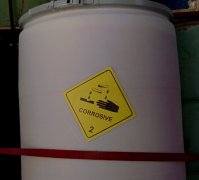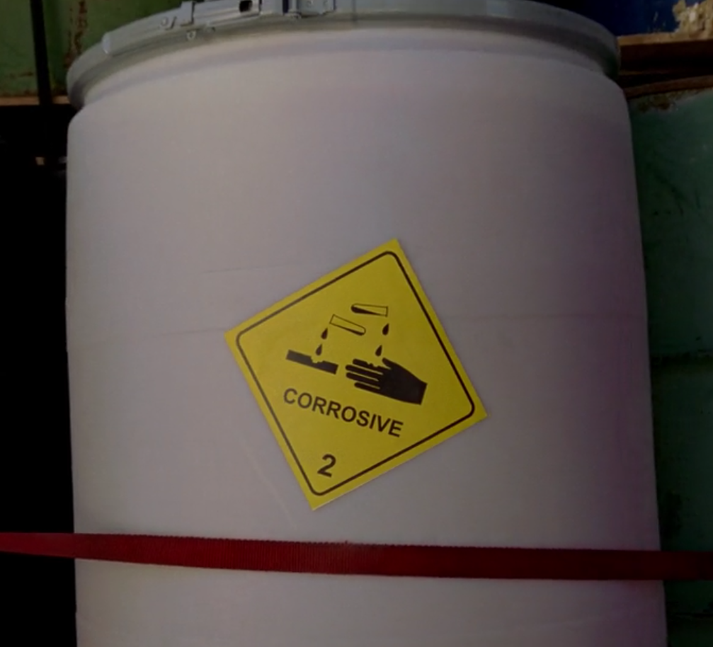 The label may be the wrong color and list the wrong hazard class number, but at least it’s something. Now, the truck will need proper placarding to haul the drum away.