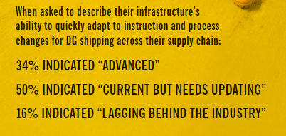 What’s more, while hazardous materials grow more numerous and the rules governing their transport grow more complex, barely a third of DG pros call their companies’ DG infrastructure “advanced.”