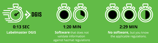 Let’s expand those numbers a little. If you handle 50 hazmat shipments a day, the difference between 1:20 and 13 seconds per shipment saves your team one full hour. 400 shipments a week? Using DGIS saves enough time to free up an employee for nearly a full, eight-hour day.