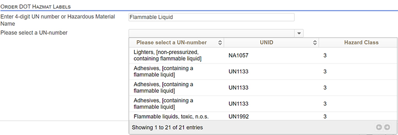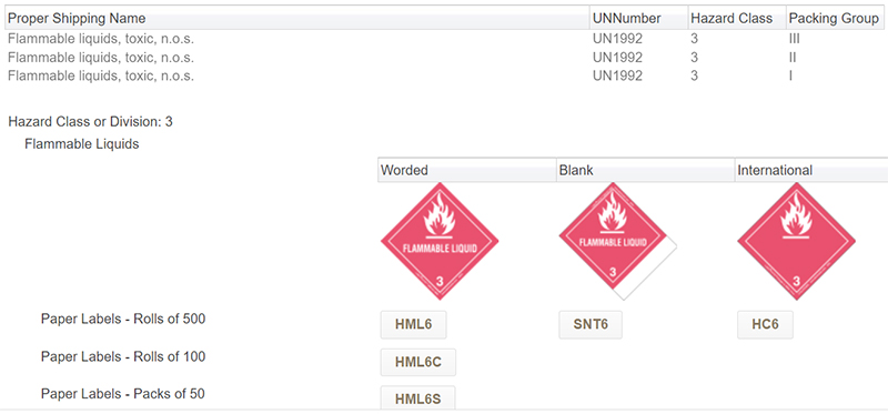 Now, not only can Label Finder help you find standard DOT hazard class labels, but it also enables you to search for tabbed blank proper shipping name labels and international wordless hazmat labels within each hazard class category.