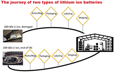 Participating in the panel discussion on the future of batteries, Puccini walked everyone through the processes of shipping batteries to recyclers. “I explained that damaged and intact batteries are governed by a completely different set of regulations so, yes, you do have to sort them out.”