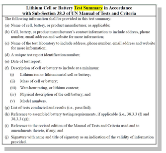 U.N. rule 38.3.5, which will mandate that battery manufacturers make available a summary of their battery test data, is scheduled to take effect in January, 2020.