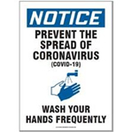 This floor sign incorporates two well-known symbols—the stop sign and the “feet” pictogram—to convey its unmistakable meaning: STOP HERE. It would work just as well with no text at all. Plus, everyone knows I’m a huge fan of the red-and-black color combo. (Full disclosure—Labelmaster did not consult me when they chose their corporate colors.) - Prevent the Spread of Coronavirus.