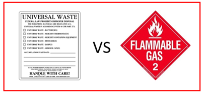 #4 Universal Waste Category label vs. #5 Class 2 Flammable Gas placard
