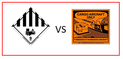 #1 Class 9 Lithium Battery label vs. #6 Cargo Aircraft Only label