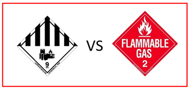 #1 Class 9 Lithium Battery label vs. #5 Class 2 Flammable Gas placard