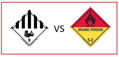 #1 Class 9 Lithium Battery label vs. #8 Organic Peroxide label