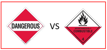 #2 Dangerous placard vs. #7 Spontaneously Combustible label