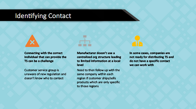 He said international suppliers and decentralized organizations have made it more difficult to track down summaries. “People are sometimes unaware of the information and don’t know who to contact. When you reach someone, they may not understand what you’re asking for. Or someone at US company may recommend contacting ‘my counterpart in Europe, but I’m not sure who that is.’”
